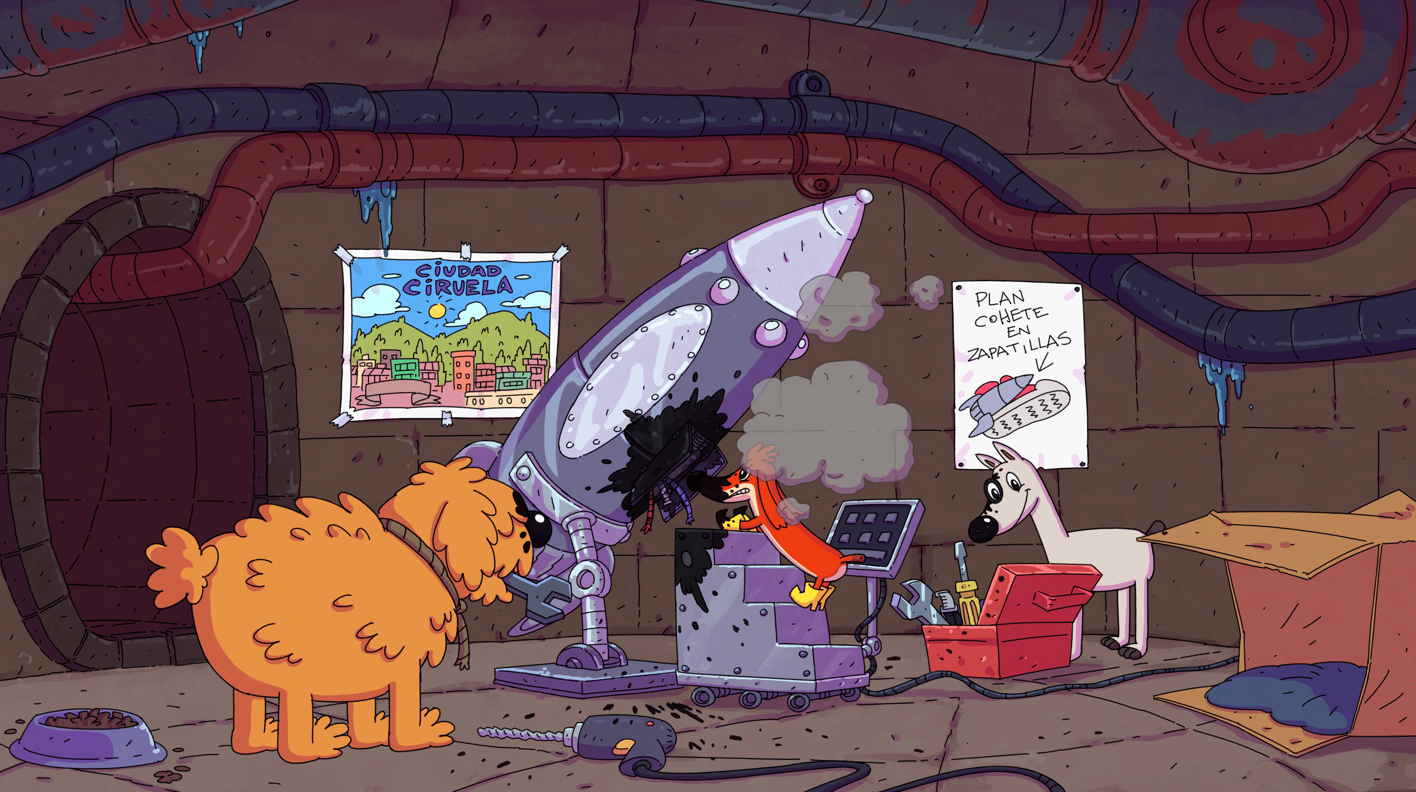 Sol, una niña de 7 años, vive en la ciudad Ciruela con sus padres científicos. Un día, la niña curiosa entra al laboratorio de sus padres y por accidente bebe un experimento que la hace crecer y crecer!! hasta convertirse en una niña gigante!. Sus padres no logran revertir el efecto. Y en búsqueda de un mejor hogar la familia se muda a un castillo abandonado que adaptan con inventos para cubrir las necesidades de la ahora, Niña Gigante. Pero… En este castillo, vivían Los Colita Corta, tres perros callejeros que se auto- destierran a las alcantarillas. No soportan compartir con los molestos humanos. La pandilla de perros formada por Canela Robinson, Palito y Bob, formulan distintos planes, siempre fallidos, llenos de ciencia y humor. Buscando una fórmula para recuperar el castillo, su anhelado hogar.. Mientras tanto, Sol aprende a vivir con su enorme tamaño, a enfrentar desafíos cotidianos y a superar la frustración de vivir en un cuerpo gigante. Su gran estatura se convierte en algunas ocasiones en una ventaja para ayudar a la ciudad en situaciones complicadas. Cada capítulo autoconclusivo presenta una nueva aventura de la Niña Gigante junto a sus padres y amigos. Y un nuevo intento de Los Colita Corta, por desatar el caos para lograr su objetivo. Esta serie combina comedia, ingenio y el valor de aceptar las diferencias.